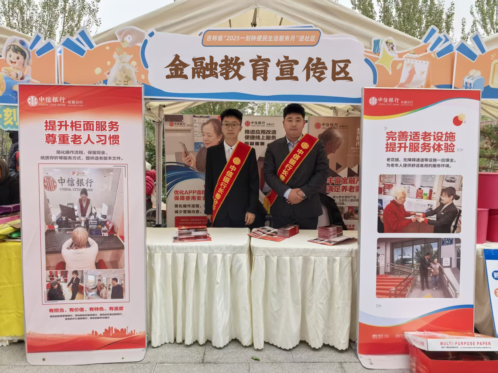 活动现场,中信银行长春分行工作人员通过海报展示、案例讲解、一对一咨询等多种形式,向老年居民全面解读适老金融服务体系。