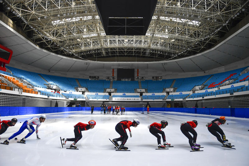 小運(yùn)動(dòng)員們?cè)诩质斜线\(yùn)動(dòng)中心訓(xùn)練館進(jìn)行訓(xùn)練。新華社記者許暢攝