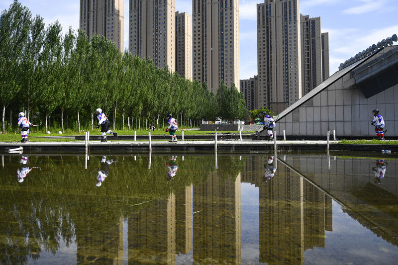 這群孩子里,一對(duì)兄弟格外顯眼。哥哥文瀟銳、弟弟文瀟峰相差2歲,有著對(duì)冰球相同的執(zhí)著。“先是哥哥在小學(xué)一年級(jí)時(shí)接觸冰球,弟弟陪著上課,后來(lái)兩兄弟都喜歡上了這項(xiàng)運(yùn)動(dòng),較著勁學(xué)?!蹦赣H何佳航說(shuō),“三伏天穿著全套裝備這么練,我看著也心疼,但是他們熱愛,我就要支持,也期待他們有朝一日站到更高水平的賽場(chǎng)上。”