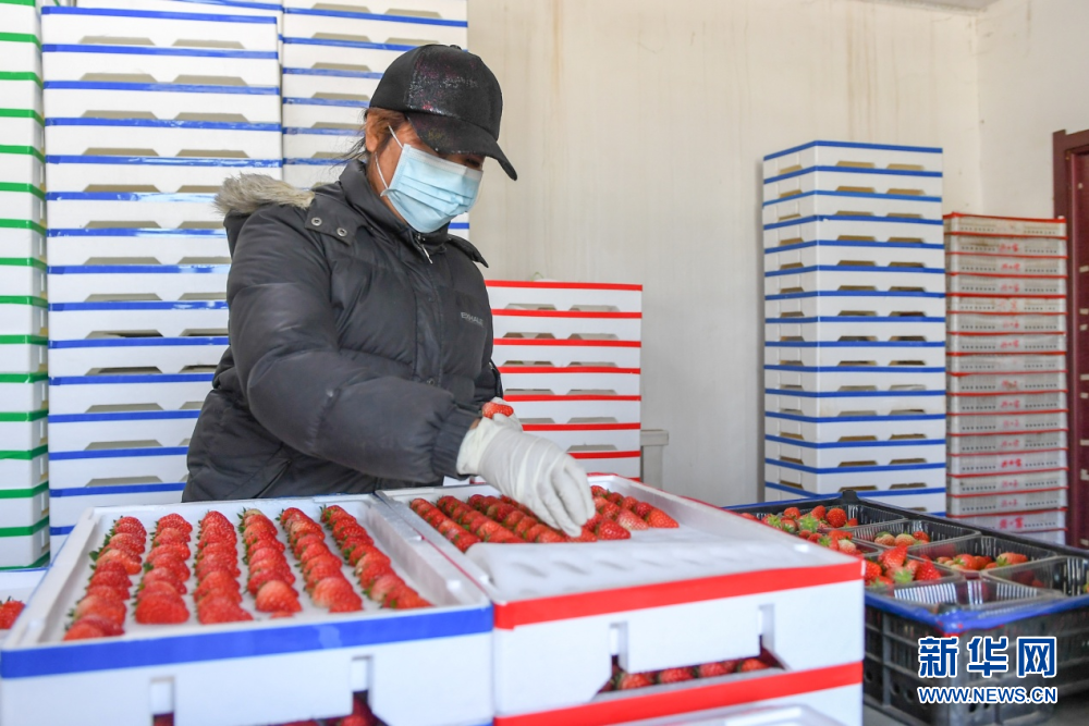 在梨樹縣梨樹鎮(zhèn)九九香農(nóng)業(yè)有限責(zé)任公司,農(nóng)民將剛采摘的草莓分等包裝。