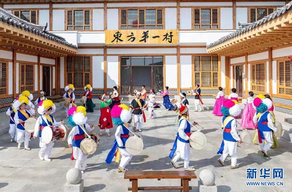 被譽為“東方第一村”的琿春市防川村正在進行民俗演出。