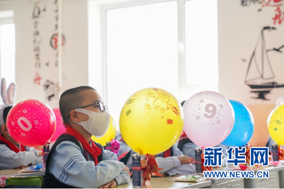2月27日,在長春市第八十七中學(xué)小學(xué)部,一年級學(xué)生在教室內(nèi)準(zhǔn)備上課。