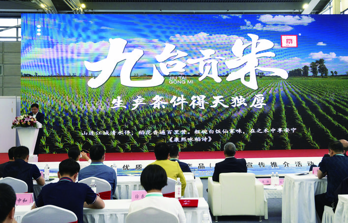 九台区在吉林省优质特色农产品(深圳)宣传推介活动上推介九台贡米区域公用品牌。
