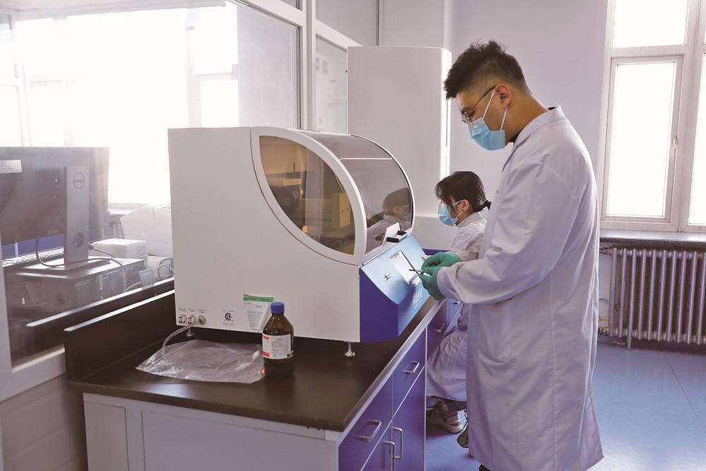 位于长春国家农高区的吉林省农科院里,工作人员在进行科研试验。