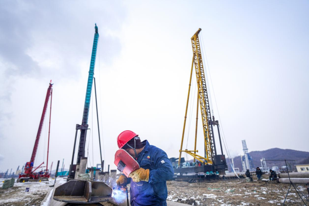 工人在吉林石化公司炼油化工转型升级项目施工现场作业(1月31日摄)。新华社记者 颜麟蕴 摄