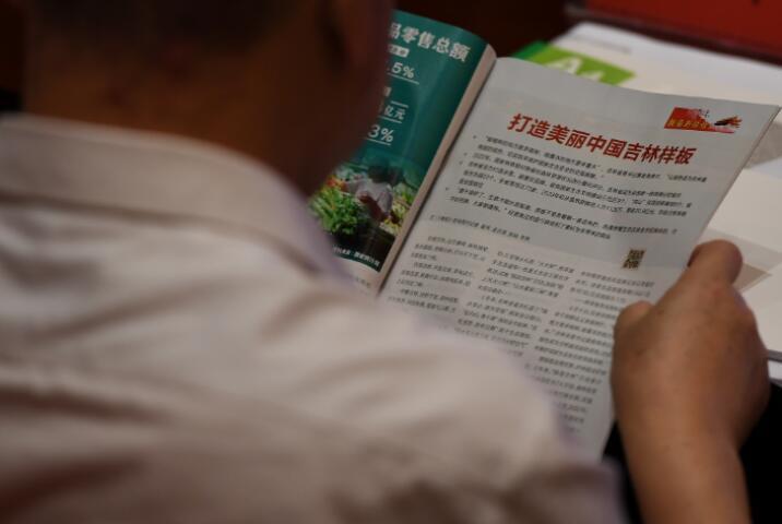 在9月26日举行的吉林省生态环境保护大会上,参会者阅读新华社报道。