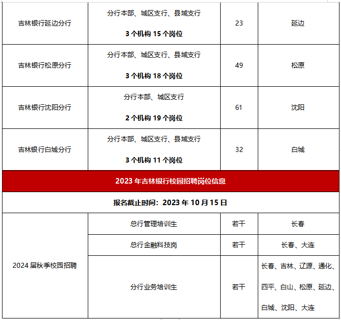 吉林银行总行携11家分行面向社会人才及高校毕业生