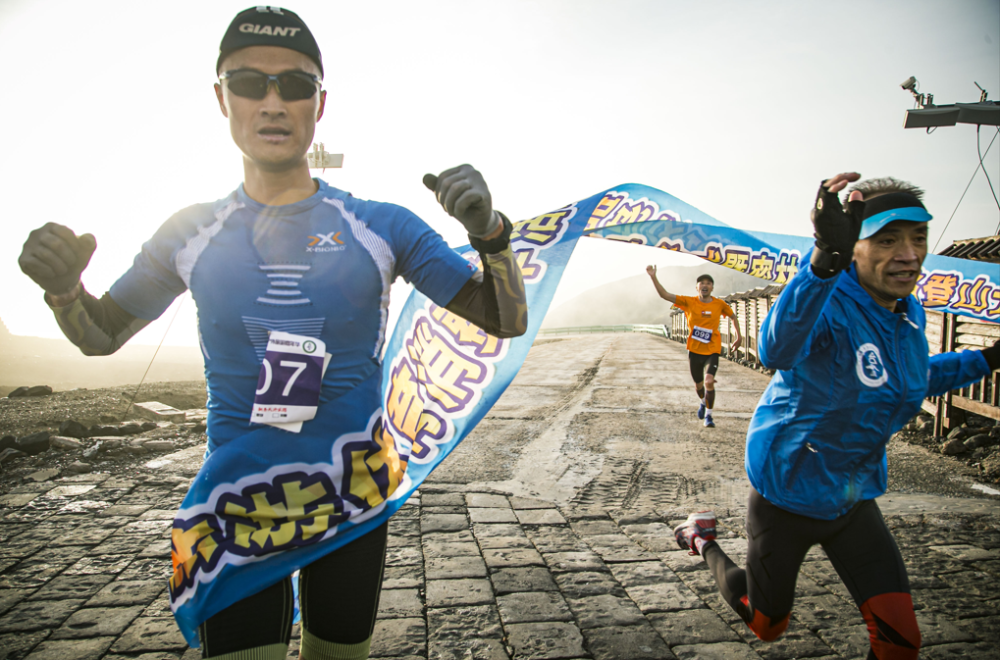 往届长白山天池云路登山赛选手冲线