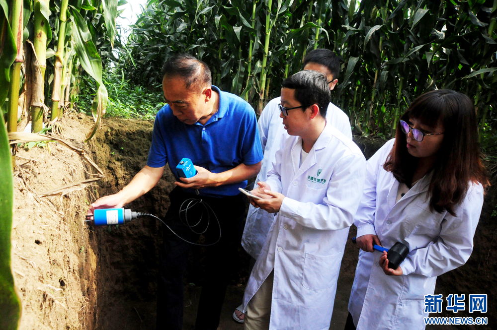 中国农业大学吉林梨树实验站副站长、梨树县农业技术推广总站站长王贵满在指导学生测土壤水分