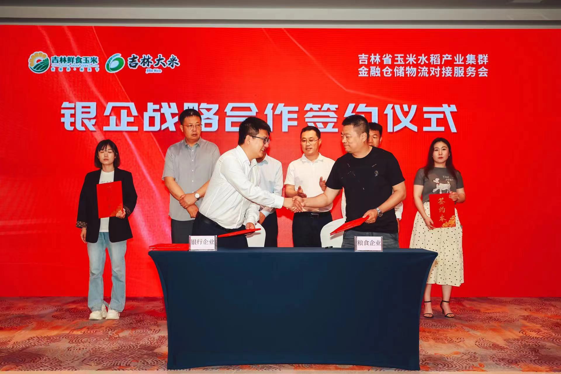 对接服务会上,省内多家银行,担保、保险、基金、物流等公司有关负责人,围绕金融助力三农发展,服务乡村振兴,对各自产品特点、优势以及服务方向等进行推介,并明确表达了积极对接省内粮企金融需求的合作意愿。集群企业也积极向金融仓储物流等企业推介自己的需求及合作方式,期待在发展壮大自己的同时,与金融仓储等企业实现互利共赢。经过充分有效对接洽谈,参会的两家银行与6家企业现场达成了合作意向。会议现场,与会人员共同见证了工商银行与吉林德乐农业开发有限公司、吉林省福玉农业科技有限公司、吉林祥裕食品有限公司3家企业;光大银行与白山市江源区千喜冷冻食品有限公司、吉林省良裕食品有限公司、吉林省农嫂食品有限公司3家企业分别签约。