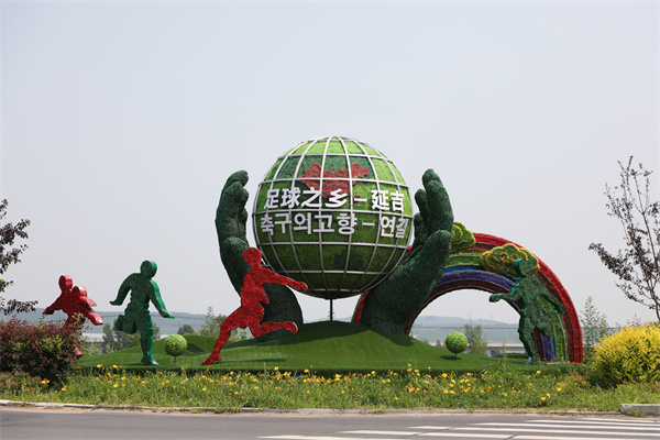 在延吉西出口,过往游客可看到以足球运动为核心元素的标志性景观造型,展现了延边人民对足球的热爱。人行步道起点和沿线设置了醒目的“延吉欢迎您”景观小品、革命老区标识小品以及独具足球之乡特色的文化小品,充分展示了“活力延吉”的设计理念。“都说延边是足球之乡,这次一到延吉就感受到了,看得出延边人是真爱足球啊,就连绿化都跟足球有关系!”从黑龙江自驾到延边的李先生在西出口休息区休息的时候,带着爱人和父母边欣赏造型鲜明的绿化景观,边颇有感触地赞叹。