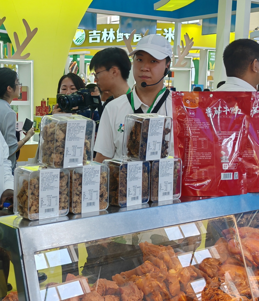 在长春城开农投畜牧发展有限公司展位前,工作人员正在向围观人群介绍肉牛的品种、饲养、售卖、市场价格、注意事项等,“我们的肉牛经过严格检疫和加工后,变成了美味可口的牛肉产品,主要包括以冷鲜、冰鲜、高档和牛冻品、调理品为主的生品牛肉产品,以及以酱卤、肠类、牛肉干等休闲食品为主的熟食产品。”