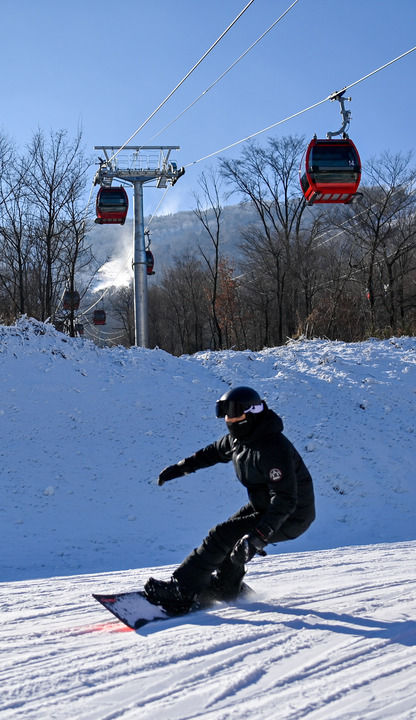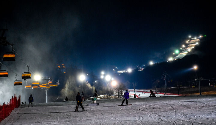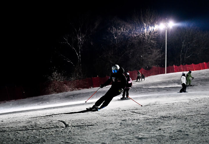 11月22日,滑雪爱好者在吉林市万科松花湖滑雪度假区滑雪。
