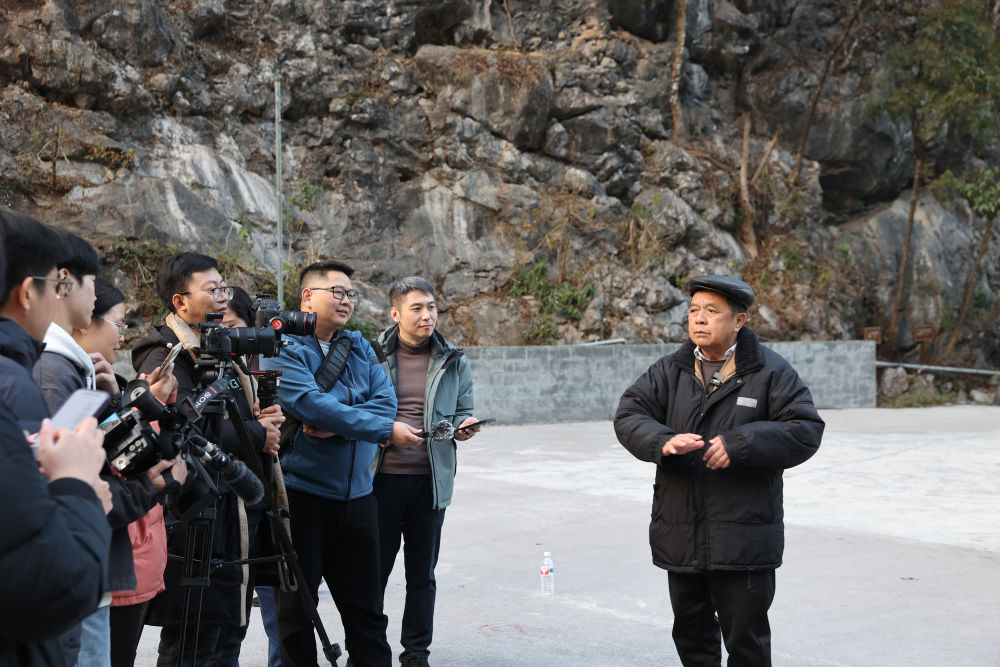 广西壮族自治区凤山县巴腊猴山景区负责人罗起跃正在介绍生态旅游产业发展情况。