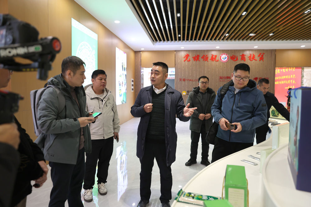 在广西壮族自治区凤山县双创产业园,电商主播正在直播带货。