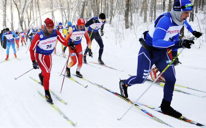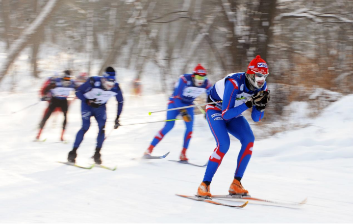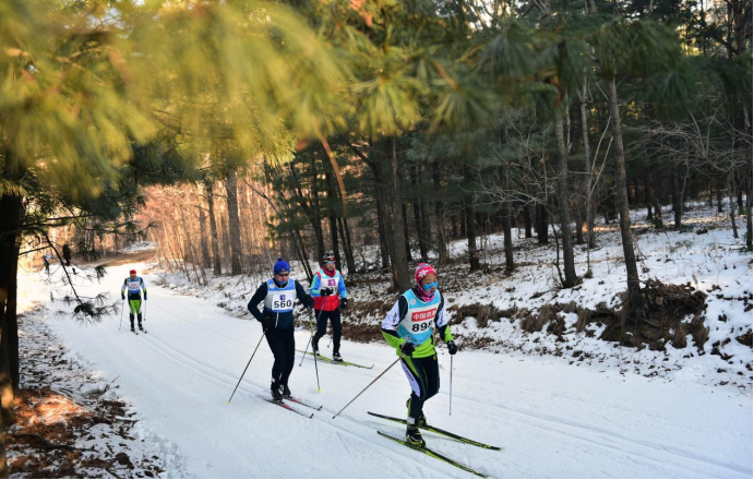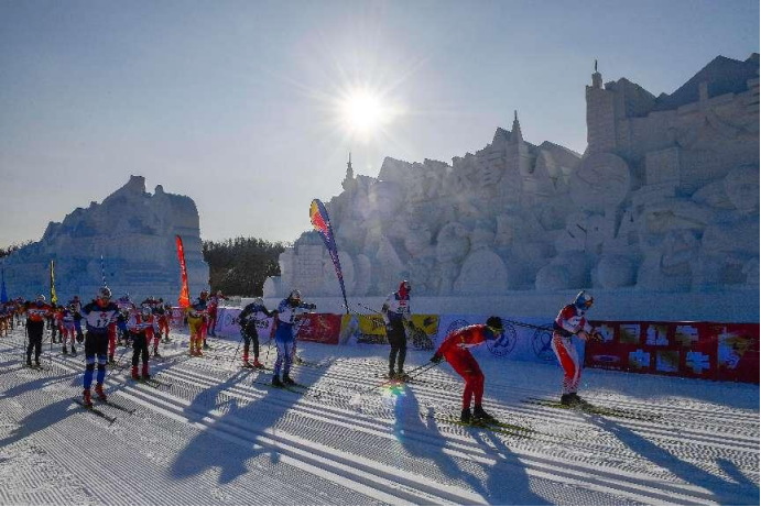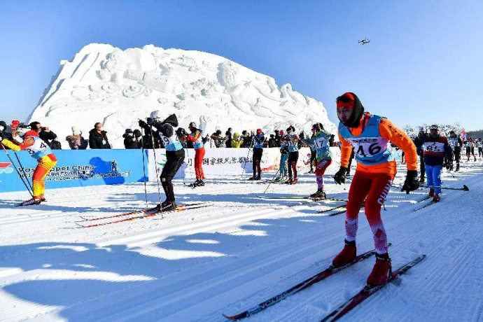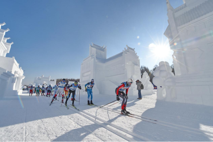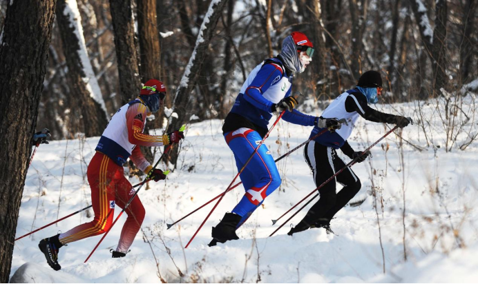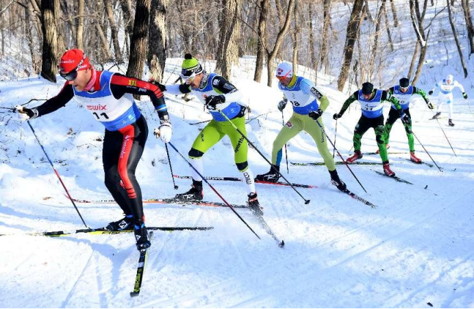 2019年1月4日,参赛选手在比赛中。当日,2019中国长春净月潭瓦萨国际滑雪节暨国际雪联越野滑雪中国巡回赛长春站比赛在长春市举行,吸引了来自32个国家和地区的1000余名选手参赛。新华社记者 孙玮彤 摄