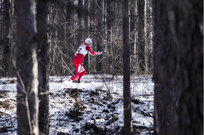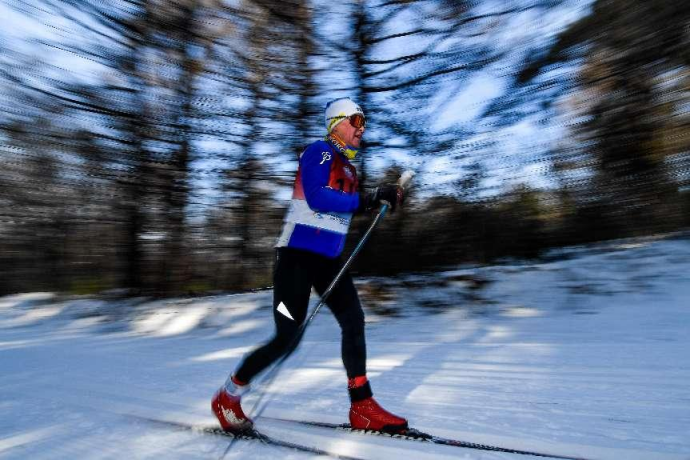 2022年1月4日,一名参赛选手在比赛中。当日,2022中国长春净月潭瓦萨国际滑雪节在吉林省长春市举行,共有400多位选手参加越野滑雪长距离50公里、短距离25公里、大众越野滑雪迷你2.5公里等项目的角逐。新华社记者 颜麟蕴 摄