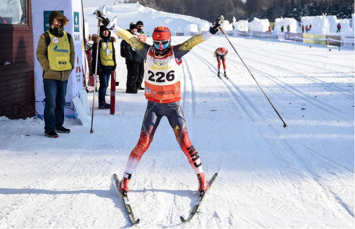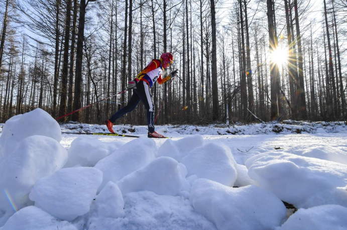 2019年1月4日,一名参赛选手在比赛中。当日,2019中国长春净月潭瓦萨国际滑雪节暨国际雪联越野滑雪中国巡回赛长春站比赛在长春市举行,吸引了来自32个国家和地区的1000余名选手参赛。新华社记者 孙玮彤 摄