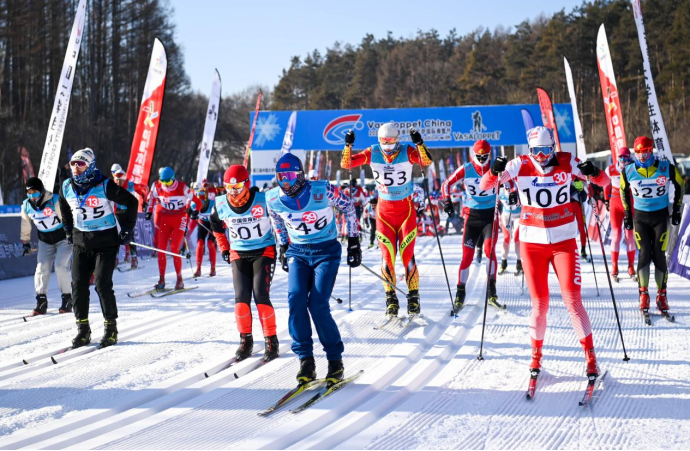 2024年1月4日,参赛选手在比赛中出发。当日,第22届中国长春净月潭瓦萨国际滑雪节在吉林长春开幕,700余名中外选手竞逐雪野,畅享越野滑雪带来的激情与挑战。新华社记者 许畅 摄