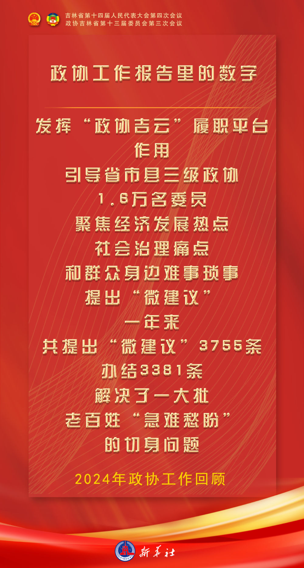新华快报·海报 | 从亮眼数据看吉林省政协2024年成绩单-新华网