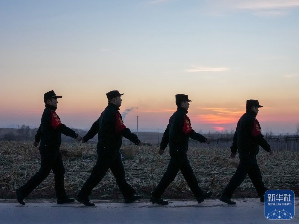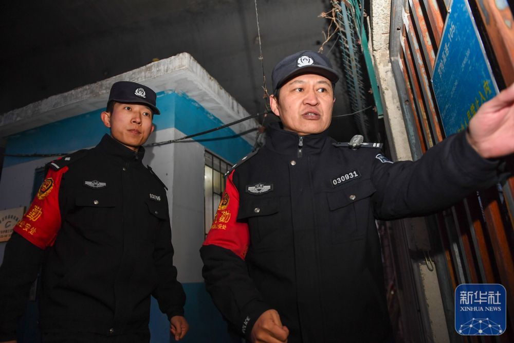 1月20日,张亮(右一)带领徒弟们在辖区巡逻。