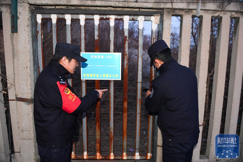 1月20日,张亮(左)与徒弟韩士博检查铁路沿线设施。