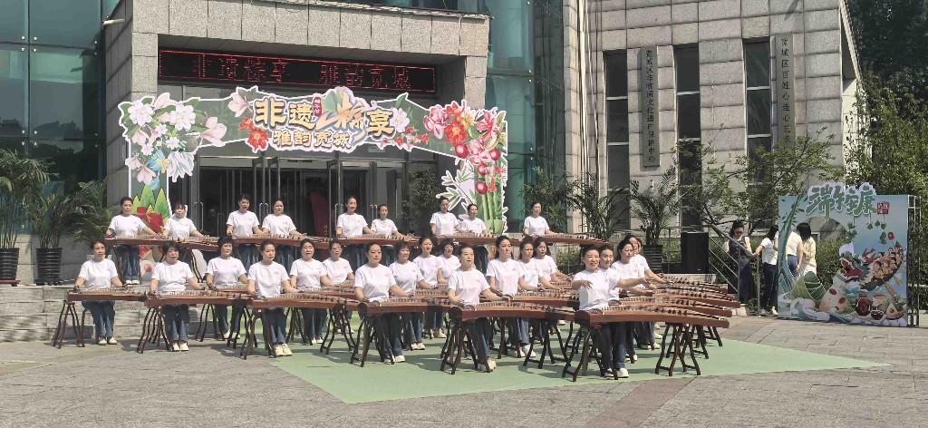活动在“绿袂旋歌·粽香筝韵”端午筝乐会中拉开序幕,以琴为媒,以文化为纽带,搭建起一座沟通古今的桥梁,让“家门口”文化活动不断档。一边是内容精彩的主题文艺演出,让“家门口”文化服务“热起来”,另一边是非遗优秀作品展览和互动,让“家门口”文化服务“活起来”。