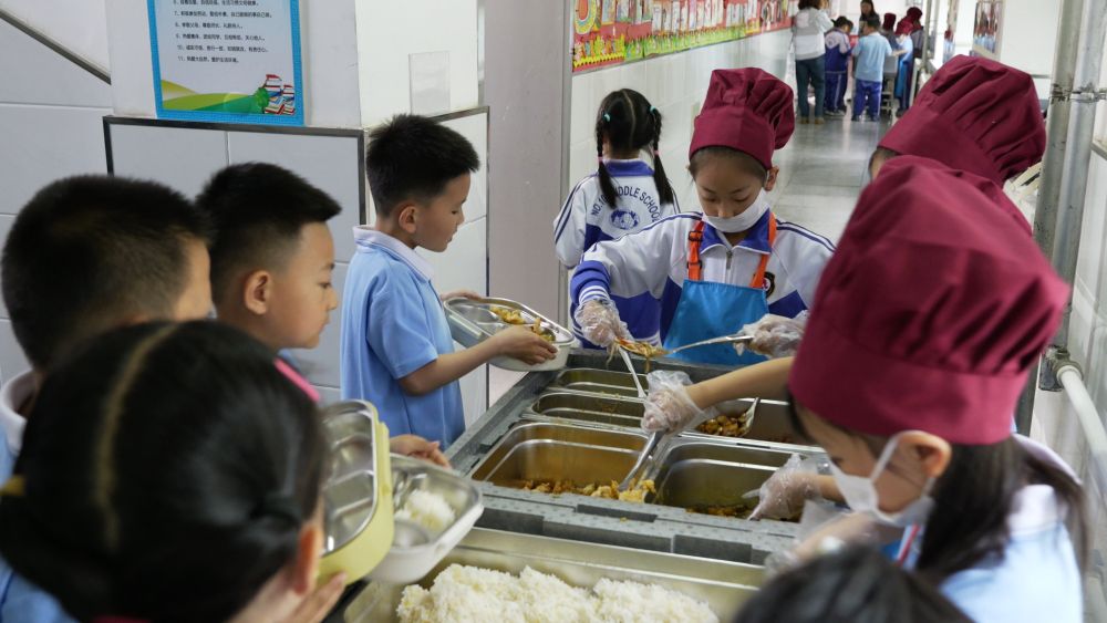 有的学校加强食育教育,让班级学生们参与分餐工作,培养孩子的自理能力;有的学校升级改造食堂,将餐厅就餐和“桶餐”进班结合起来,优化供餐方式;有的学校改进了食堂文化,全面加强安全饮食、科学膳食的宣传教育……