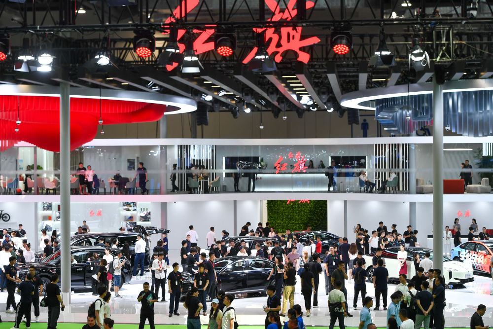 长春汽博会上,以一汽集团为代表的整车制造企业和众多零部件企业展示了众多新车型、新技术。作为中国汽车工业厚重历史和制造技术的代表,一汽红旗金葵花子品牌携国礼、国雅、国耀三大车型展出,非遗大漆、苏绣、镌刻等东方美学设计和“V8TD+HEV+智慧四驱+8AT”的动力组合,显示出红旗在超豪华领域的“硬核”实力,吸引众多观展市民排队“打卡”。