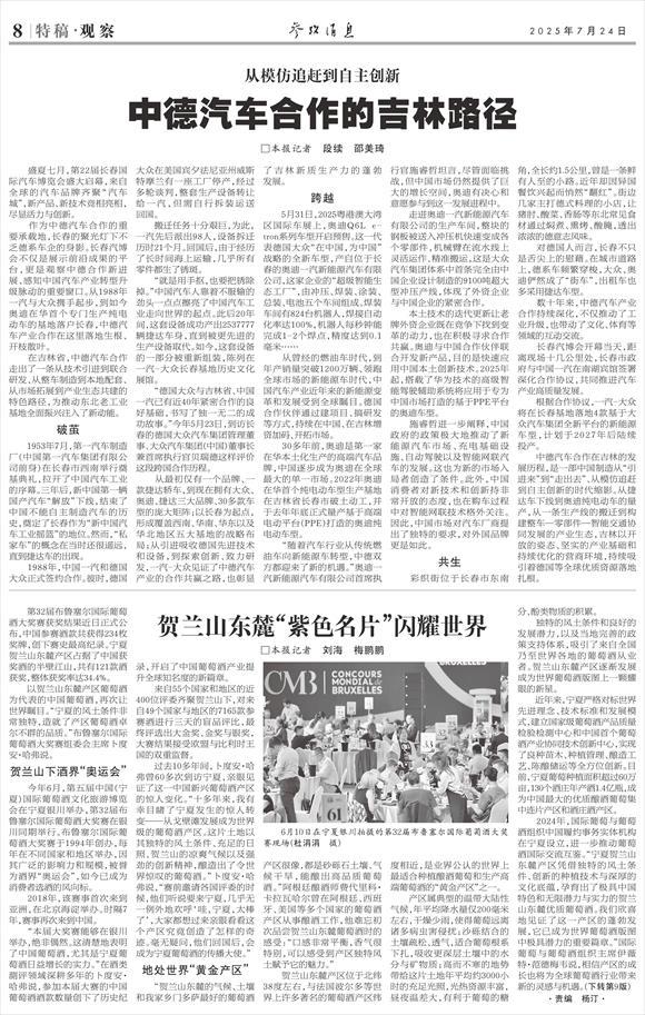 在吉林省,中德汽车合作走出了一条从技术引进到联合研发、从整车制造到本地配套、从市场拓展到产业生态共建的特色路径,为推动东北老工业基地全面振兴注入了新动能。