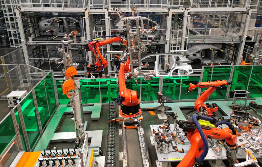 5月31日,2025粤港澳大湾区国际车展上,奥迪Q6L e-tron系列车型开启预售。这一代表德国大众“在中国,为中国”战略的全新车型,产自位于长春的奥迪一汽新能源汽车有限公司,这家企业的“超级智能生态工厂”,由冲压、焊装、涂装、总装、电池五个车间组成。焊装车间有824台机器人,焊接自动化率达100%,机器人每秒钟能完成1-2个焊点,精度达到0.1毫米……
