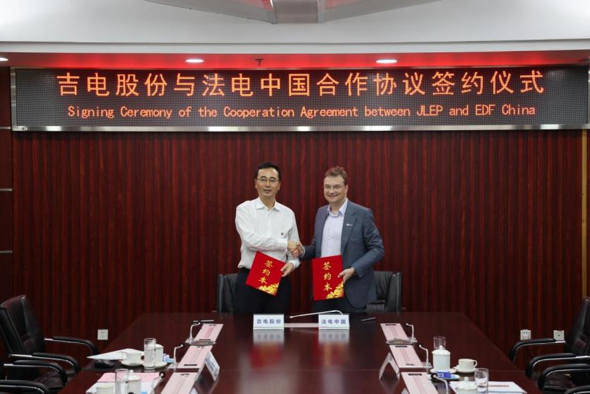 在吉电股份与法电中国合作协议的签约仪式上,杨玉峰介绍了公司基本情况、绿色氢基能源产业发展思路及战略布局。尚为邻介绍了法国电力集团和法电中国的基本情况及产业特点。他表示,法电中国与吉电股份战略契合、理念共振,希望双方充分发挥各自优势,在绿色氢基能源全产业链方面加强合作,实现互利互惠。