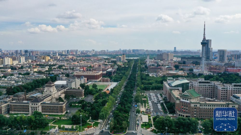7月30日拍摄的长春历史文化博物馆和新民大街(无人机全景拼接照片)。