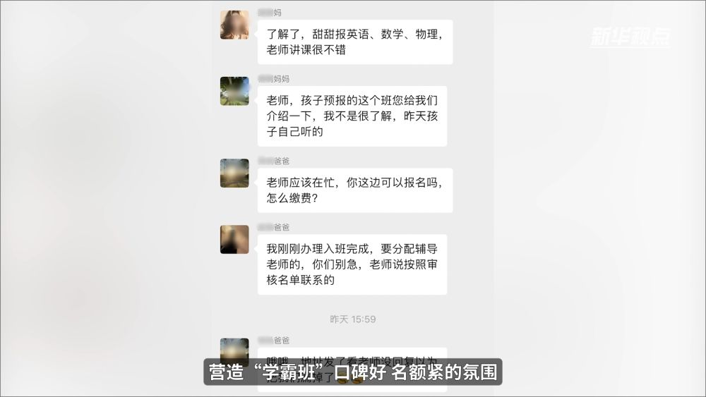 在“学霸班”报名群内,老师介绍主讲教师、教学特色的同时,还有所谓的学生家长与之互动,营造“学霸班”口碑好、名额紧的氛围,学生家长们也纷纷把学费付款截图发入群中。