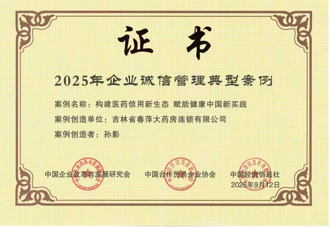 近日,“2025年企业诚信管理典型案例”评选结果在北京揭晓,蛟河市一企业成功入选全国医药行业诚信建设典型案例。这是蛟河市诚信企业首次获评此项全国性评选,标志着“信用蛟河”城市名片越擦越亮。