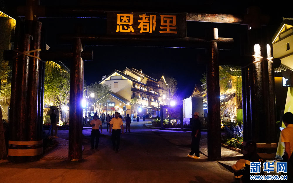 6月17日,游客在二道白河镇的云顶市集游玩。新华社记者王帆 摄