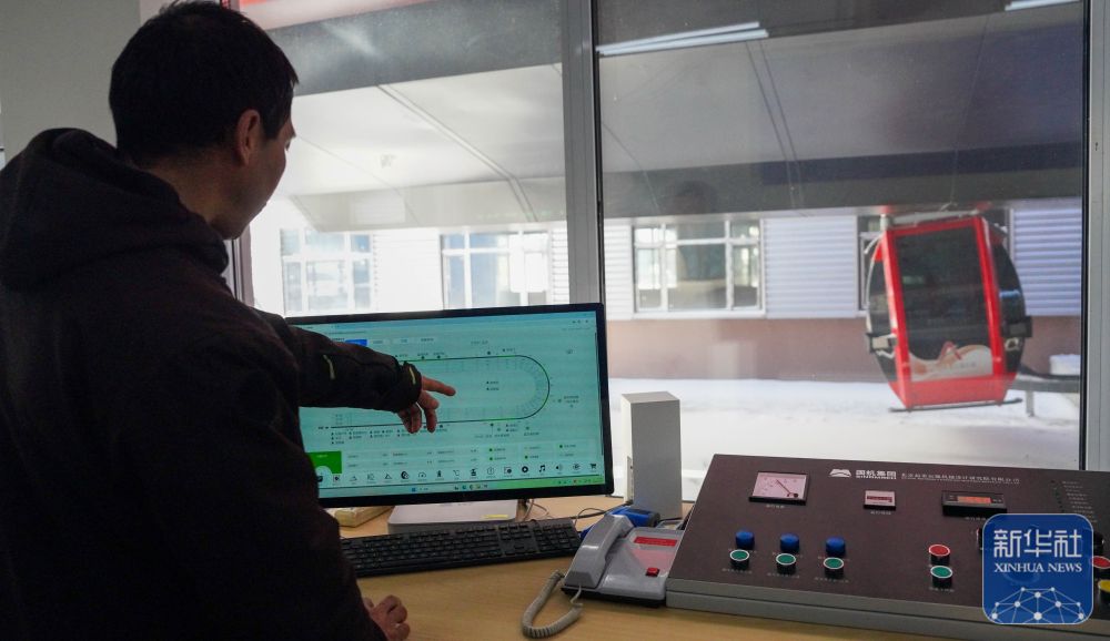 ↑ 吉林市北大湖滑雪度假区缆车站工作人员使用智能化装备操作缆车运行。